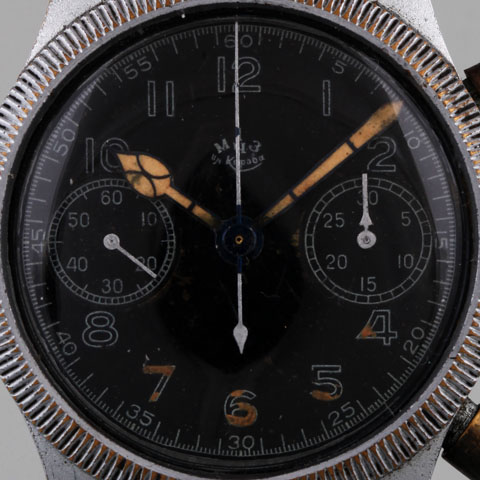 Chronographe Type-59 produit en 1947 par la 1ère Fabrique de Montres de Moscou (n° de série 00390).