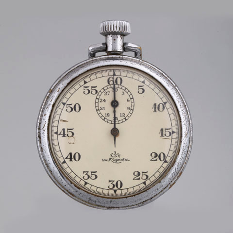 La trotteuse marque les secondes avec une précision de 0,2 seconde, la petite aiguilles marque les minutes (jusqu’à 30)