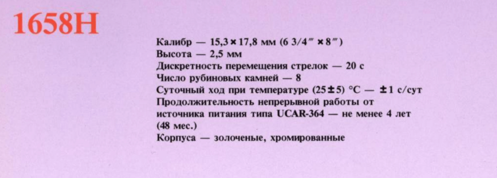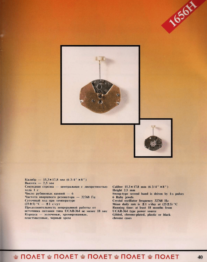 Le 1658H en est un développement a été produit par la 1ère Fabrique de Montres de Moscou, il a les mêmes dimensions et caractéristiques que le 1656H mais il compte 8 rubis et non 6.