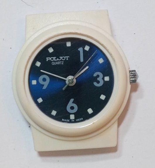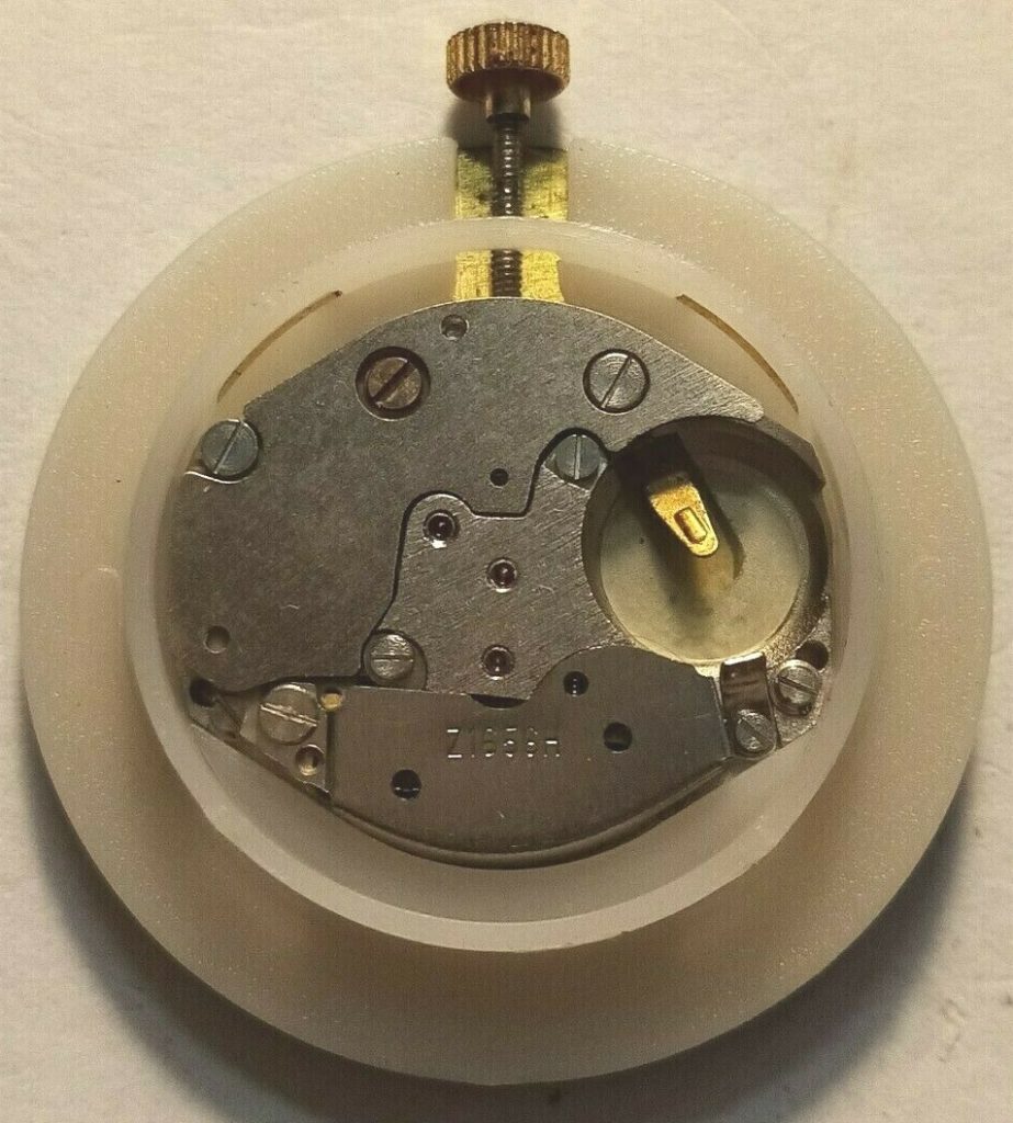 Calibre à quartz à aiguilles, avec trotteuse, des années ’80, produit encore après la fin de l’URSS.