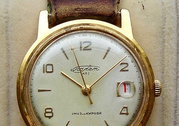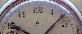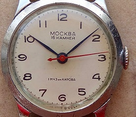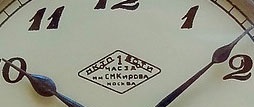 Dans les années 50, les montres de la 1FMM portent la mention 1 мчз им Кирова (pour 1-го московского часового завода им Кирова, 1ère Fabrique de Montres de Moscou du nom de Kirov) à 6 heures ou sous l’axe des aiguilles.