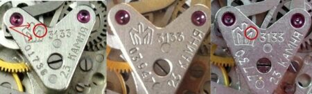 La couronne réapparait dans la seconde moitié des années 80 (ici sur un 2628H et 26162H). La couronne est alors estampée sur la platine (les précédents marquages l’étaient sur un pont: