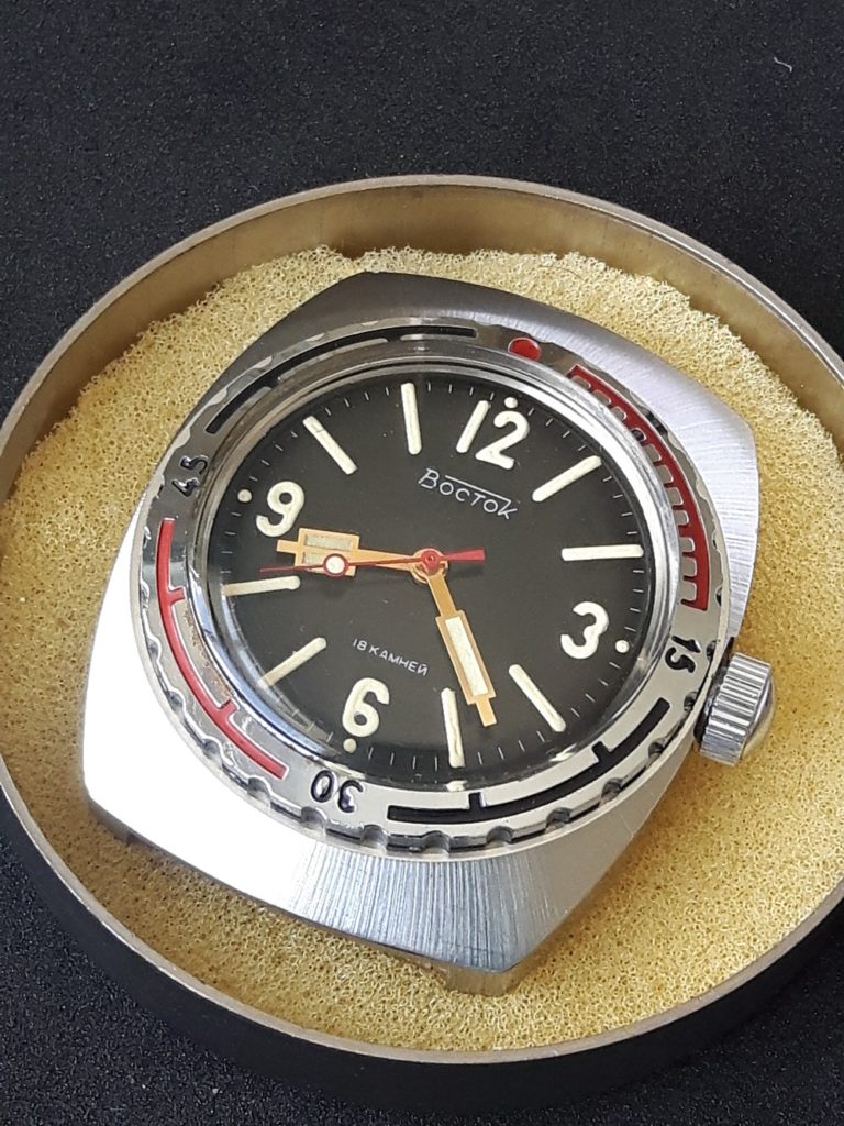 La conception initiale de la montre de plongée Vostok Amphibia à la Fabrique de Montres de Tchistopol en 1967 est bien documentée. Les concepteurs de la montre, Mikhail Novikov et Vera Belov, avaient pour mission de créer une nouvelle montre de plongée fiable, capable de résister à la pression et aux changements de température à des profondeurs allant jusqu’à 200 mètres.