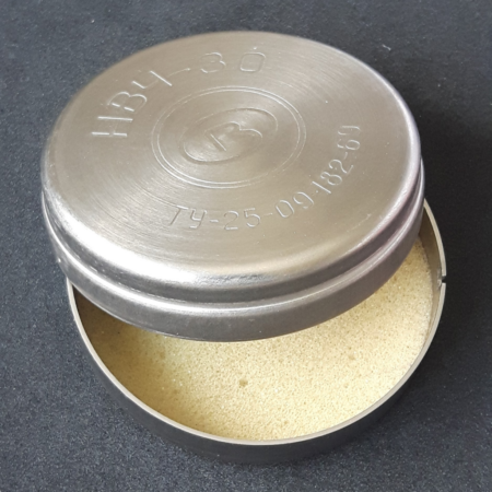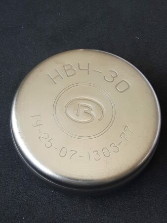 Ci-dessous, une boîte de rangement typique pour une НВЧ-30 de première génération. Le couvercle porte l’inscription НВЧ-30, le logo de la fabrique Vostok et le code de standardisation GOST de l’État soviétique.