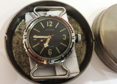 Il convient de noter que la marine soviétique disposait déjà d’au moins une montre de plongée. La Zlatoust Vodolaz НЧ-191 (photo ci-dessous) avait été produite depuis le début des années 1950, mais en 1974, la production était sur le point de s’achever.