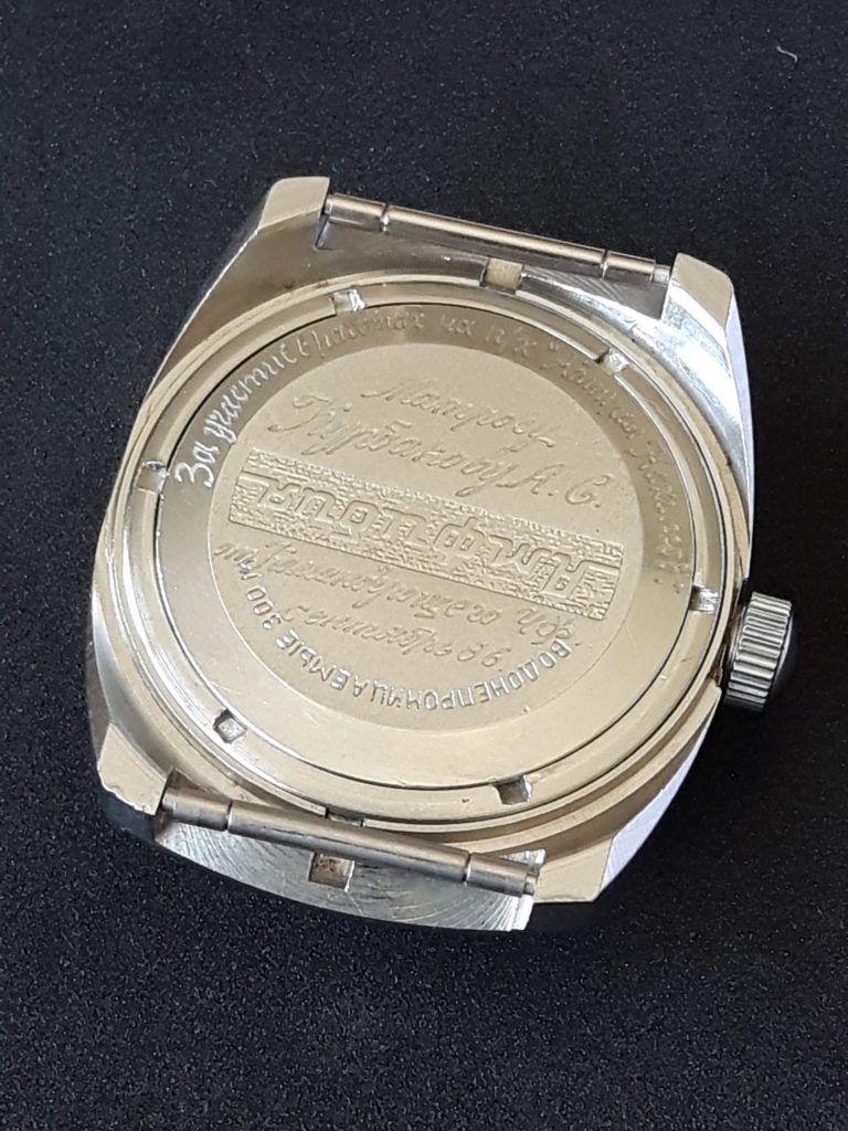 Une montre НВЧ-30, ci-dessous, comporte une inscription sur le fond du boîtier qui se lit à droite :
