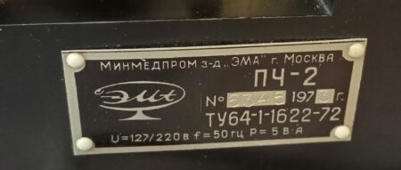 Elle a été produite en 1973 par la Fabrique d’Appareils Médicaux Electriques EMA (ЭМА, Завод Электронной Медицинской Аппаратуры) de Moscou.