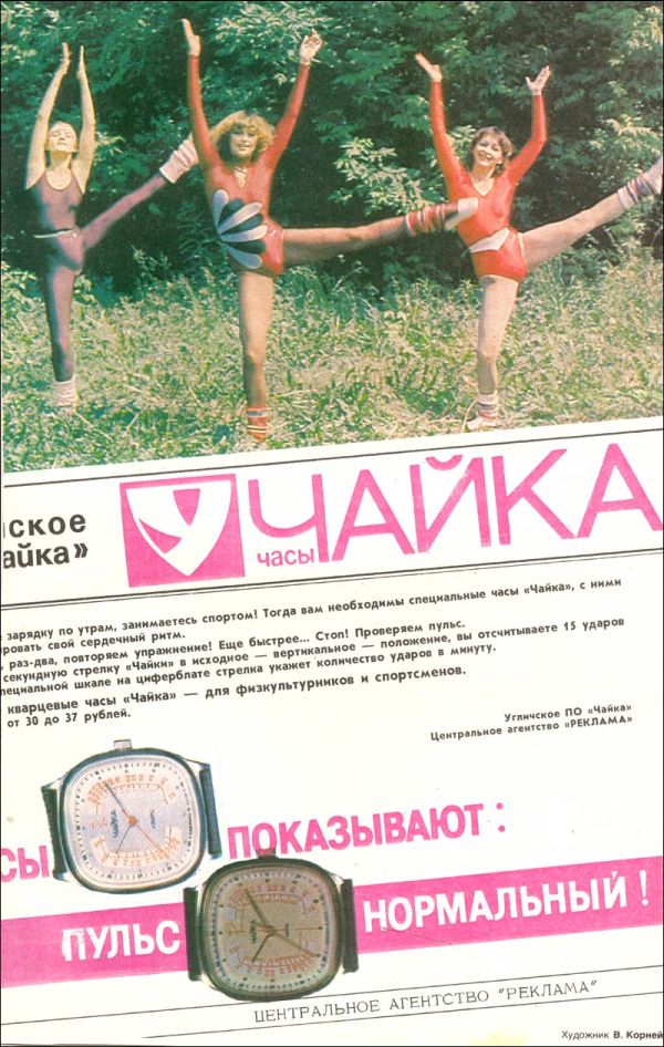 Montre bracelet, à quartz, avec pulsomètre, de marque Чайка, de la Fabrique de Montres d’Ouglitch