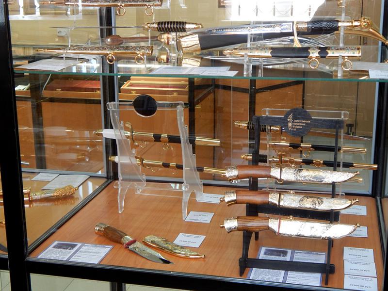 La ville de Zlatoust a été fondée dans l’Oural en 1754, lors du développement des fabriques de fer implantées le long de la rivière Ay, à 160 kilomètres de Tchéliabinsk. Au début du 19e siècle, c’est à Zlatoust qu’étaient produit les sabres des cavaliers et officiers de l’Empire russe, ainsi que les premières pièces d’artillerie. Encore aujourd’hui, la production d’armes blanches reste une spécialité de la ville.