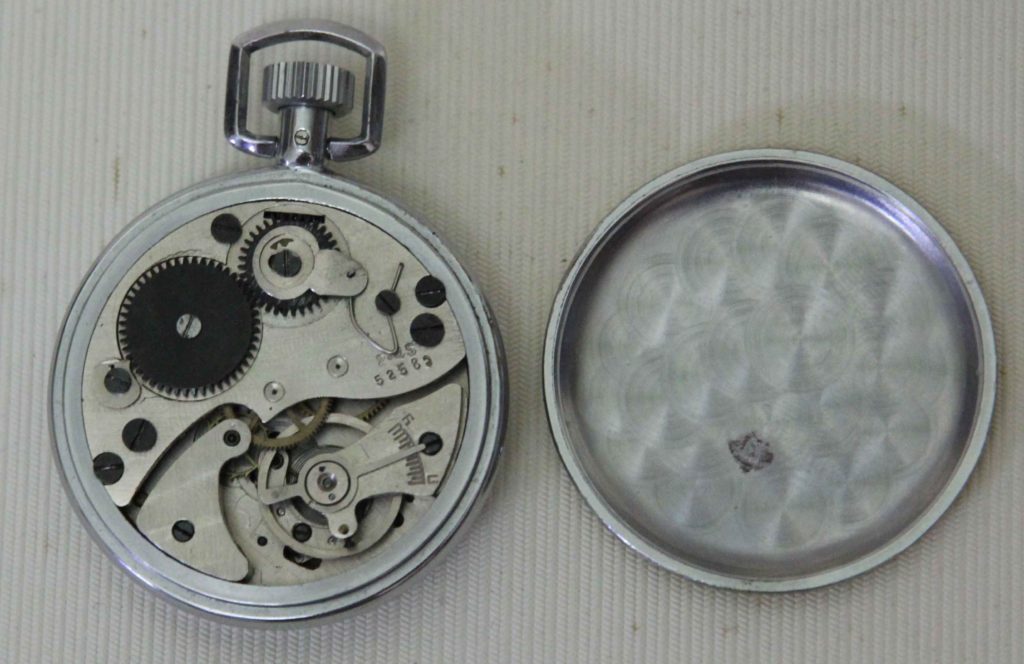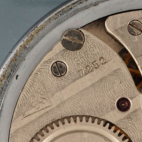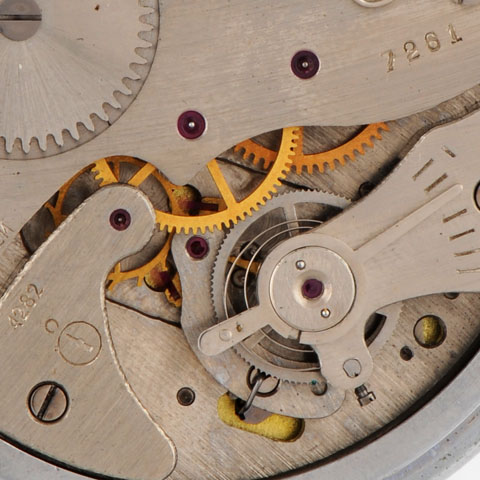 La production de guerre est souvent sans marquage comme le montre ce mécanisme de chronomètre de février 1945: