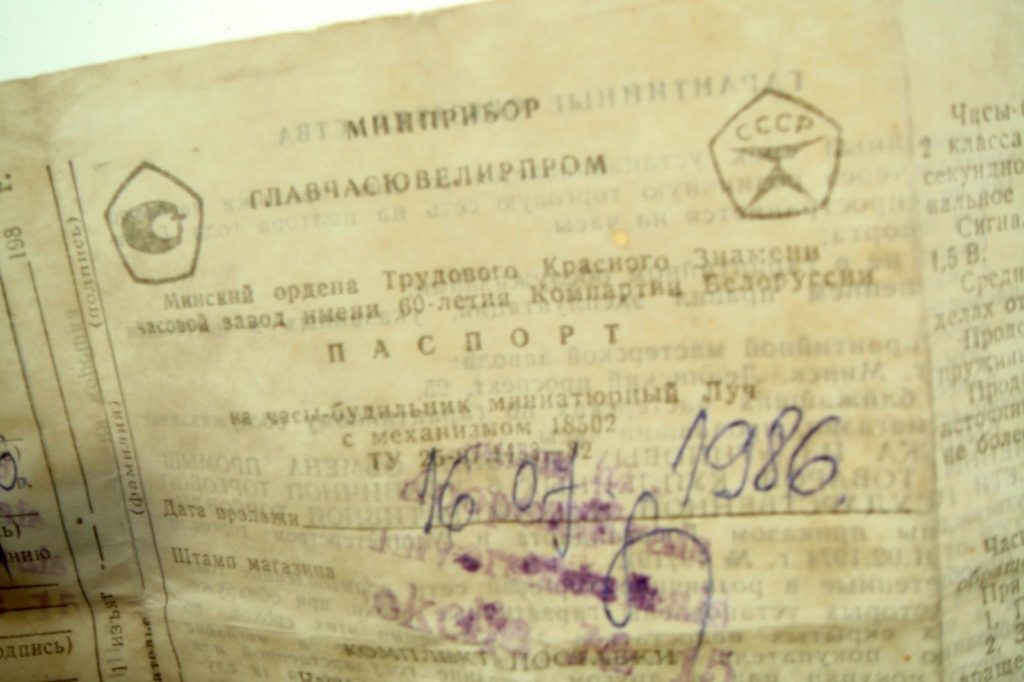 L’arrière du boîtier porte la marque de qualité de l’industrie soviétique.