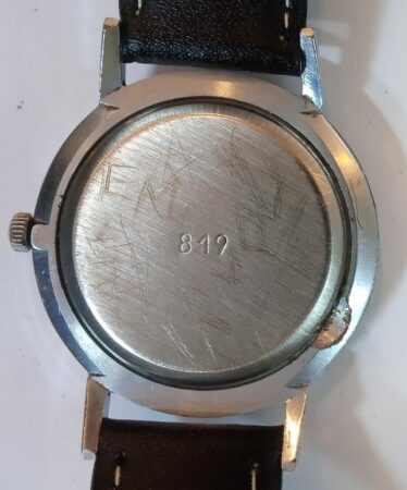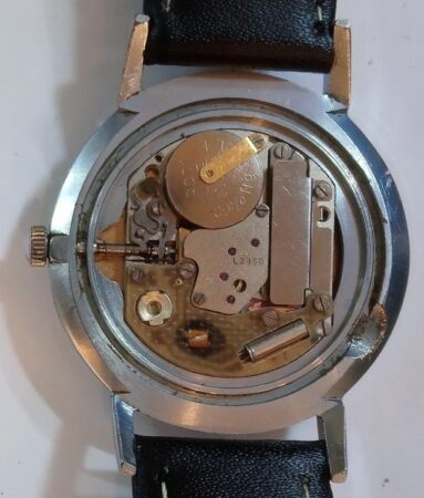 Le mécanisme 2350 est la variante du 2356 avec jour et date. Cette montre n’a pourtant pas de guichet. Le cas n’est pas rare chez les Luch.