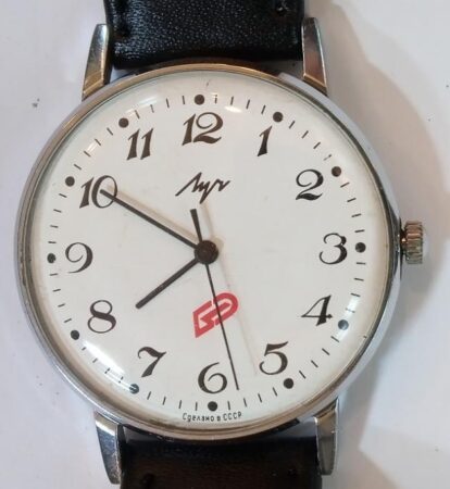 Le cadran porte en rouge le logo de la Главное производственное управление энергетики и электрификации Белорусской ССР (Белглавэнерго), autrement dit de la Direction principale de la production de l’énergie et de l’électrification de la RSS de Biélorussie (Belglavenergo)
