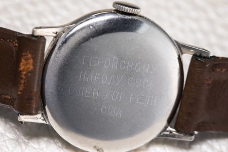 C’est la la loi Lend-Lease, adoptée en mars 1941, qui a permis à la Russian War Relief de livrer ces montres aux troupes soviétiques. Cet outil législatif permettait aux États-Unis de rester à l’écart de la guerre tout en fournissant du matériel aux forces alliées. Il est possible que la Russian War Relief ait organisé la livraison des montres aux troupes en dehors de l’acte de prêt-bail : sur la commande de fabrication des montres par exemple, la loi de prêt-bail n’est pas mentionné.