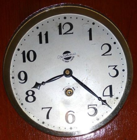 Cadran avec le premier logo de la Fabrique d’Horloges d’Orel