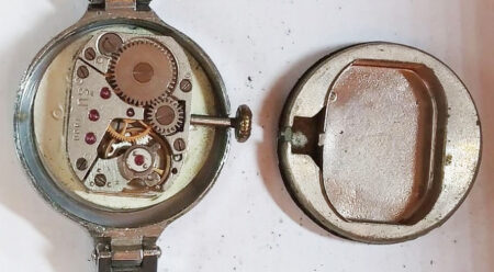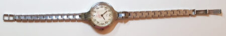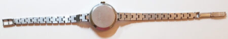 Boîtier de laiton chromé, avec bracelet intégré, au fond clipsé.