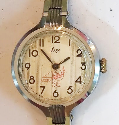 Mentions sur le cadran : 40 Бccp 1944-1984 avec un motif de feuilles de lauriers (pour les 40 ans de la libération de la République socialiste soviétique de Biélorussie)