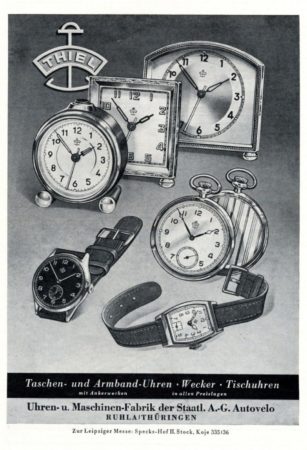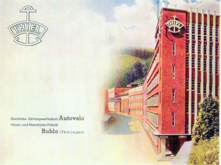La SAG de Machines de Précisions Awtowelo (contraction du russe pour « Automobiles-Vélocipèdes »), ou simplement AWO, était une SAG dont les principales entreprises étaient l’usine BMW d’Eisenach et la fabrique d’armes de chasse Simson à Suhl. AWO chapeauta bientôt d’autres fabriques: Elite Diamantwerke à Siegmar-Schönau (près de Chemnitz) la Feinmeßzeugfabrik Keilpart à Suhl, la Rheinmetallwerk à Sömmerda, la Kugellagerfabrik Böhlitz-Ehrenberg à Leipzig, la Fichtel-&-Sachs-Werk à Reichenbach et, nous y voilà, la Uhren- und Maschinenfabrik Thiel de Ruhla.