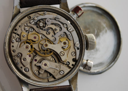 Ces chronographes étaient produits depuis 1941 par la société Tutima, basée à Glashütte, pour l’aviation allemande. Mais les réparations se firent aussi par la production en Allemagne même de montres au bénéfice de l’URSS.