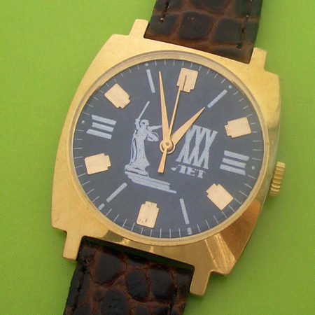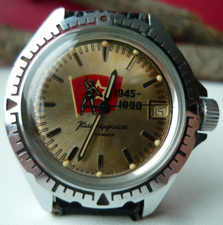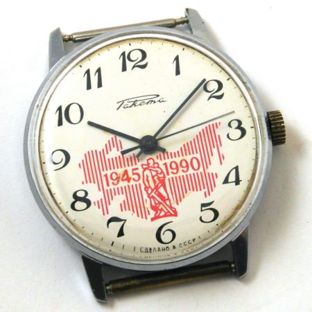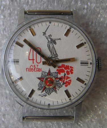 Cet article ne concerne que les motifs spécifiques des montres soviétiques célébrant la victoire (à l’occasion d’un anniversaire: 1945-196à, 1945-1970 etc.) et non les autres thèmes relatifs à la guerre comme l’anniversaire d’une libération (un exemple ici), la célébration d’une « ville-héros » (un exemple ici), etc.