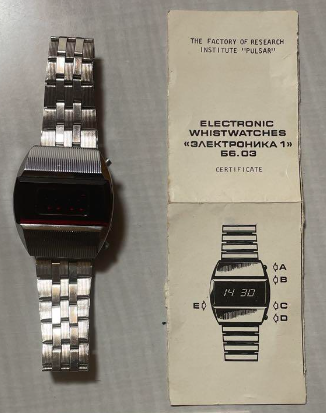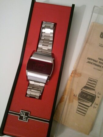 Montre bracelet, à quartz LED produite par la Fabrique de l’Institut « Pulsar », à Moscou