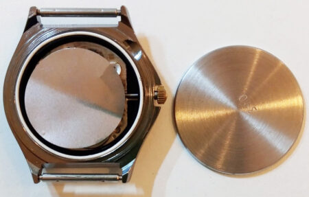 Boîtier de laiton chromé avec une bague plaquée or autour du verre