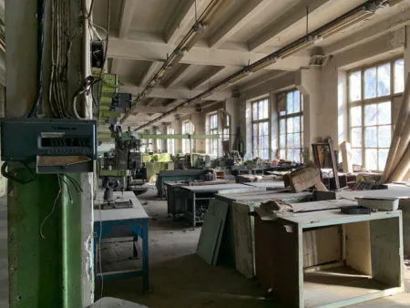 Après l’effondrement de l’URSS, l’usine arrêta ses activités en 1991, puis les reprit sur une moindre échelle ; elle a été privatisée en 1995, des capitaux suisses s’y sont investi, et l’usine continue à produire, employant 450 personnes mais une nouvelle fermeture est vite survenue. Voici la fabrique abandonnée (source)
