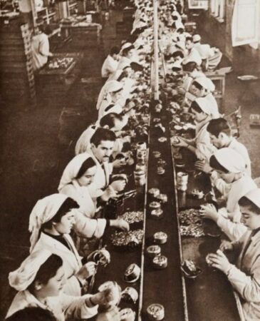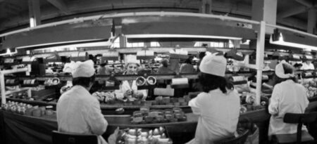 Quand nous attendions que le ruban convoyeur se mette à tourner, nous pouvions nous asseoir et papoter. Nous n’étions pas toujours occupées. La fabrique était très bruyante. Le bruit des machines nous gênait quelquefois, mais quand nous parlions entre nous, nous ne le remarquions pas.