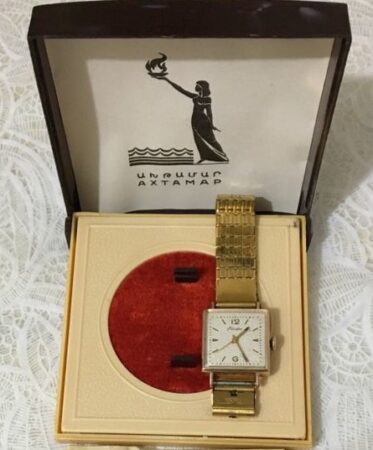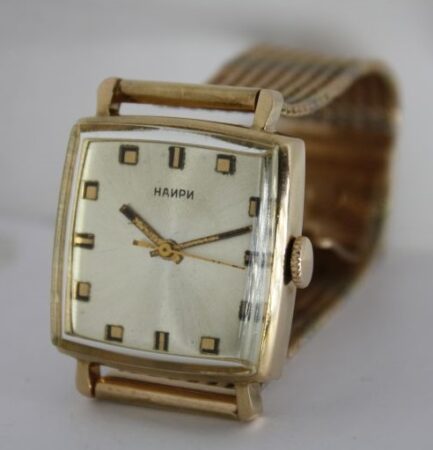 La Fabrique d’Erevan produisit aussi de belles et rares montres-bracelet en or pour hommes et pour femme de marque Nairi et, plus rarement, de marque Erevan. L’usine d’Erevan ne fabriquant pas de mouvement, ces montres emboîtaient des calibres produits par les fabriques de Moscou N°1 (2409, 2614.2H,…) et d’Ouglitch (1601, 1601A).