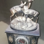 C’est dans les années ’50 qu’on voit apparaître les pendules de fer coulées à Kasli et intégrant des horloges des fabriques de Vladimir, de Zlatoust et, ce qui va devenir l’association privilégiée, de Tchéliabinsk.