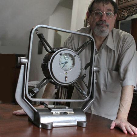 Conçue et produite à l’origine à la fin des années 1930 par la société berlinoise Pintsch Bamag pour l’armée de l’air allemande (Luftwaffe). La chaîne de production allemande a été confisquée en 1945 par les Soviétiques au titre des réparations de guerre et transférée à Moscou où des horloges presque identiques ont été produites avec des marques soviétiques.