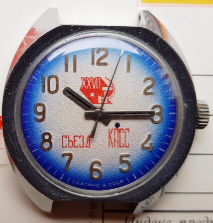 Outre les montres célébrant la Révolution, il y a celles célébrant le Parti communiste d’Union soviétique (généralement produites à l’occasion de ses congrès) et celles de ses organisations de jeunesses (Pionniers et Komsomols):