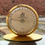Ce tachymètre a été produit par la Troisième Fabrique de Montres de Moscou au cours du 2e trimestre 1953, à l’époque où elle s’appelait encore Fabrique pilote d’instruments du Chasprom. En savoir plus sur cet objet