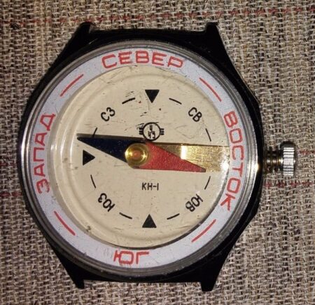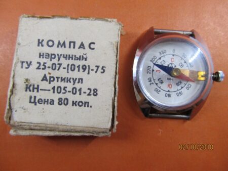 La boussole de type KN-1 (КН-1) est dans un boîtier de montre dont le fond (fixé par une bague à six mors) porte le n° 301552 et dont la couronne est un bouton-poussoir qui libère une lame ressort bloquant l’aiguille de la boussole. Le cadran porte le logo de la Fabrique de Montres de Tchistopol et la nomenclature du modèle : КН-1.