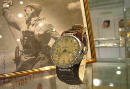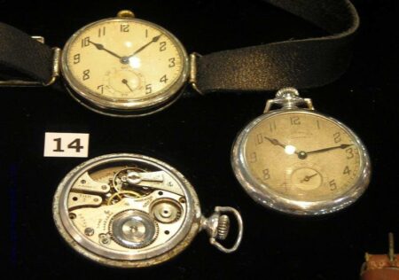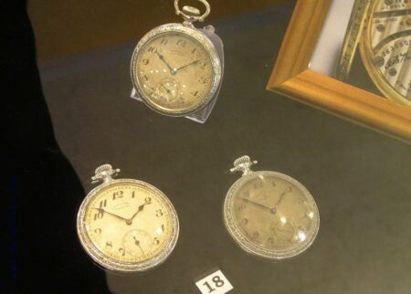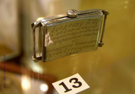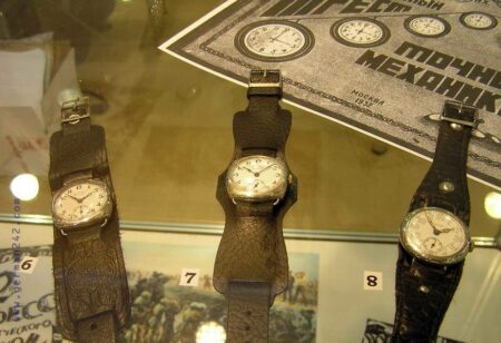 1. Chronomètre « Leonidas Prima Foot-Ball sur commande spéciale Dynamo », boîtier en nickel, mouvement fabriqué par Leonidas, Suisse, 1923-1930.2. Chronomètre « KULTSNAB VTsSPS » (КУЛЬТСНАБ ВЦСПС), boîtier en nickel, mécanisme suisse, années ’203. Chronomètre fractionné « GOSTRuST TOCHMEKH Moscou » , boîtier en nickel, mécanisme Suisse, années 1920.6-7-8: Montres du Gostrust Tochmekh (1926-27), du Gostrust Moskva (1927-28) et du Gostrust 9. (1927-1928). Boîtiers en nickel et mécanismes suisses.9. Montre du Gostrust Tochmekh Moskva, boîtier en nickel et mécanisme suisse (1927-1928)10 et 11. Montres du Gostrust Tochmekh Moskva (1927-1928), boîtiers en nickel et mécanismes suisses. 12. « Gostrust Tochmekh par ordre de N.K.P.S. », boîtier en nickel, mécanisme suisse (1930), 13 et 14. Montres Gostrust Tochmek, boîtier en nickel, mécanisme suisse, 1928-1930.K43 de la 1ère Fabrique de Montres (1943)K-43 de 1940K43 de la 2e Fabrique de Montres (1940)5. et 6. K-Montres de la Coopérative « Le Temps Exact » (ПРОМ. КООП. АРТЕЛЬ ВЕРНОЕ ВРЕМЯ) de Moscou 1938 et 1939-40. 7. TMP du district Komintern de Moscou, 1940. 8. TMP du district Sok. de Moscou, 1940. TMP du district J.-D. de Moscou, 1941.Zvezda, Penza K-18, 1941Penza K-19, 1940Penza K-18, 3ГЧЗ, boîtier en argent, 1940ZIF K-18, 1938ZIF K-18Montre Gostrust Tochmekh avec mécanisme Dueber- Hampden de 193016 à 18 K-43 de la 1ère et 2e Fabrique de Montres, 1930 à 1940