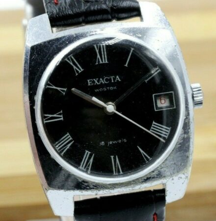 Les montres portant le nom Exacta étaient généralement identiques à la production intérieure soviétique à l’exception du nom sur le cadran.