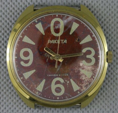 Lorsqu’elle produira ses propres montres, Petrodvorets fabriquera des cadrans en jaspe et en néphrite pour ses Raketa de prestige.
