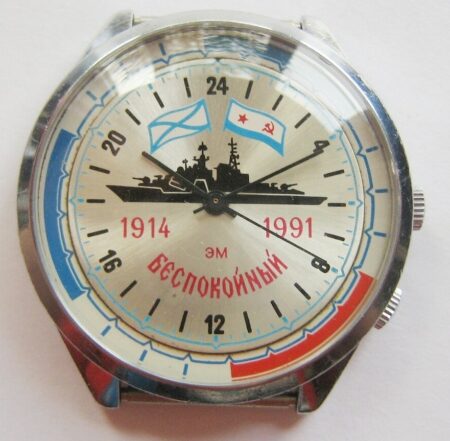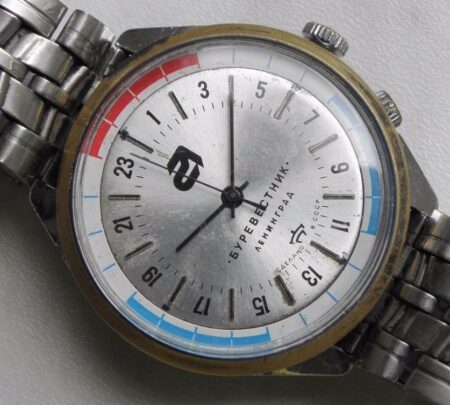 Bourevestnik (буревестник), cela veut dire « Pétrel » (l’oiseau marin). C’est le nom d’une entreprise pharmaceutique de Léningrad. En savoir plus sur cette montre