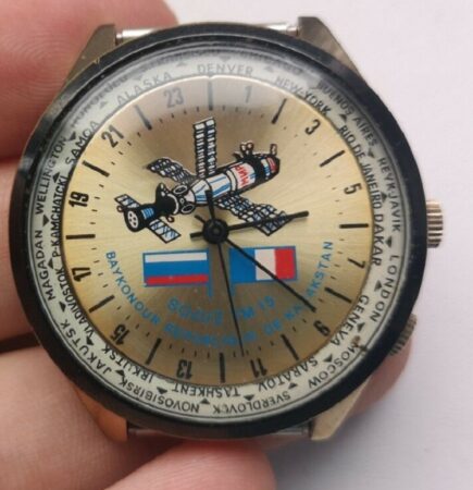 La mission Soyouz TM-15 date de la mi-1992. Le cadran porte déjà le drapeau russe mais la lunette intérieure mentionne « Sverdlovsk » alors que la ville a été rebaptisée « Ekateninbourg » fin 1991. Le mécanisme a aussi des marquages « soviétiques » (SU)