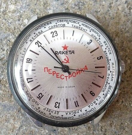 A cela s’ajoute les montres s’affichant comme fabriquées en URSS mais en réalité bien postérieures à la chute de l’URSS, et produites par Raketa, alors au bord de la faillite, parce que le « CCCP » était plus vendeur que le « Russia ».