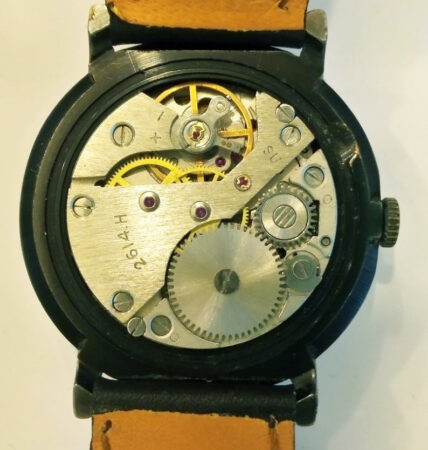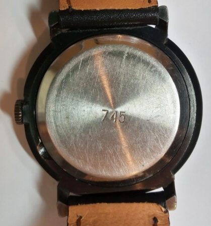 Cette montre est sans marque mais est à l’origine un modèle Raketa dont elle porte le logo.