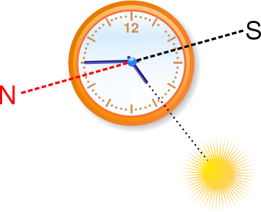 Elle est basée sur le principe qu’en connaissant l’heure solaire (ou le décalage d’avec l’heure légale) et en sachant dans quel hémisphère on se trouve (c’est moins difficile), on peut s’orienter.