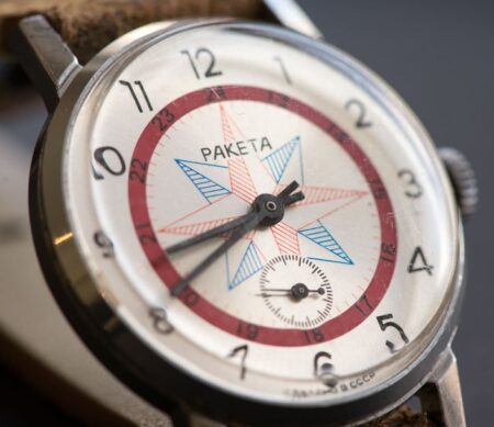 Montre bracelet de marque Raketa, mécanique, produite par la Fabrique de Montres de Petrodvorets. (Петродворцовый Часовой Завод)