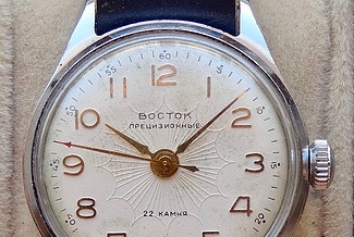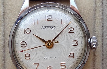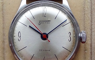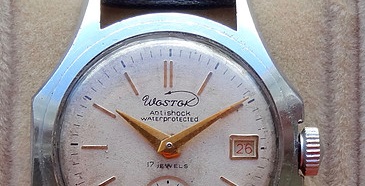 En 1962 donc, apparaît la marque Vostok, elle se marque d’abord sans fioriture sur le cadran: