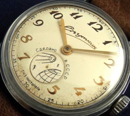 La fabrique de Tchistopol a fabriqué des Pobeda de 1949 à 1960. Elles sont sans marquage d’usine sur le cadran.