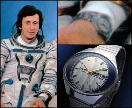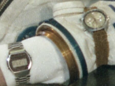 Au poignet d’Alexeï Alexandrovich Goubarev lors du vol de Soyouz 28 (du 2 au 10 mars 1978):