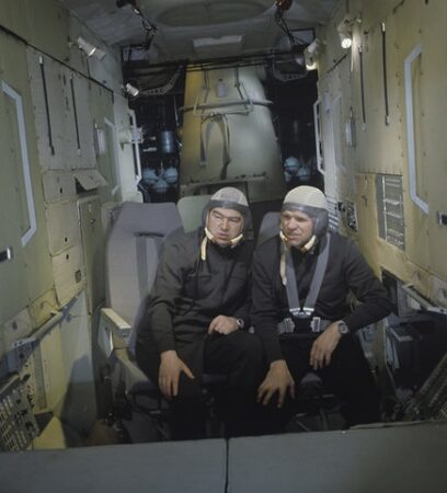 Vladimir Komarov portait une Strela lors du vol tragique de Soyouz-1 qui lui coûta la vie le 24 avril 1967