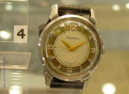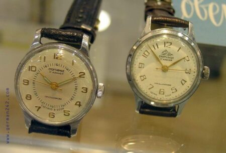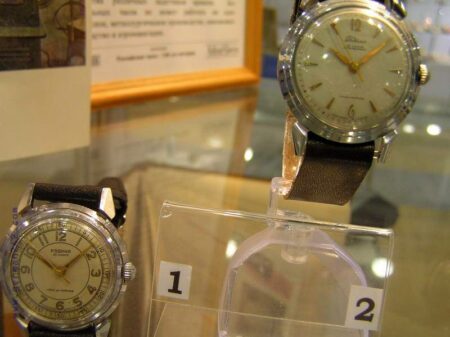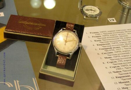 Deux Rodina (Родина), 1ère Fabrique de Montres de Moscou, 1946 et 1956Kama de la Fabrique de Montres de Tchistopol, 1960Kirovskie de la 1ère Fabrique de Montres de Moscou, 1958Pôle Nord, montre 24H de la Fabrique de Montres de Petrodvorets, 1957Spoutnik de la 1ère Fabrique de Montres de Moscou, 1957Mayak, 1ère Fabrique de Montres de Moscou, 1955Chronographe de la 2e Fabrique de Montres de Moscou, 1960Strela (Стрела), chronographe, 1ère Fabrique de Montres de Moscou, 1960Tchaïka de la Fabrique de Montres de Tchistopol, 1959Kirovskie de la 1ère Fabrique de Montres de Moscou, 1958Deux Moskva de la 1ère Fabrique de Montres de Moscou, 1958Mir, 2e Fabrique de Montres de Moscou, 1957Signal, montre-réveil, 1ère Fabrique de montres de Moscou, 1960Sportivnie (Спортивные), 1ère Fabrique de Montres de Moscou, 1958Spoutnik, Fabrique de Montres de Tchistopol, 1959Uran, Fabrique de Montres de TchistopolRossia, Fabrique de Montres de Petrodvorets, 1957Volna, Fabrique de montres de TchistopolOural, Fabrique de montres de Tchéliabinsk, 1958Montres pour aveugle. A droite, de la Fabrique de Petrodvorets, 1960. A gauche, de la Fabrique de Zlatoust,, 1956Zlatoustkie de la Fabrique de Montre de Zlatoust, 1948Droujba, Fabrique de Montres de Tchistopol, fin des années ’50.Zlatoustkie de la Fabrique de Montre de Zlatoust, 1949 (n*2) 1948 (n°3)Neva de la Fabrique de Montres de Petrodvorets, 1959Molnija de la Fabrique de Montres de Tcheliabinsk, de bas en haut: 1950, 1955, 1956, 1961Saliout, 2e Fabrique de Montres de Moscou, 1946Iskra, 2e Fabrique de Montres de Moscou, 1957Pobeda en argent de la 2e Fabrique de Montres de Moscou, 1946ZIM de la Fabrique de Montres Maslenikov, 1948