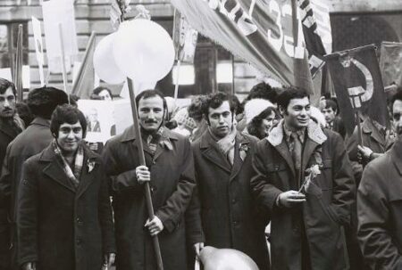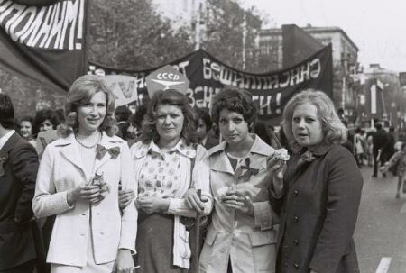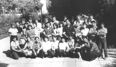 Départ d’un groupe de travailleurs de la Fabrique « Azon » vers Chouchi. Chopuchi, dans le Haut-Karabagh, était une localité où les vacanciers de toute l’URSSvenaient se reposer et profiter des paysages montagneux de toute la région (1984)