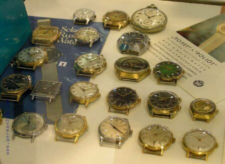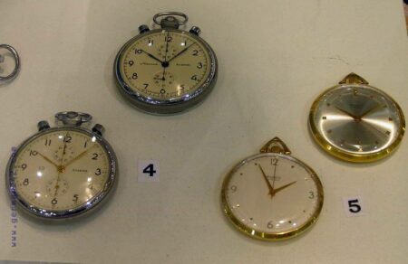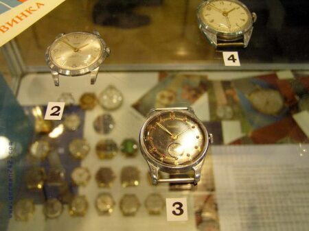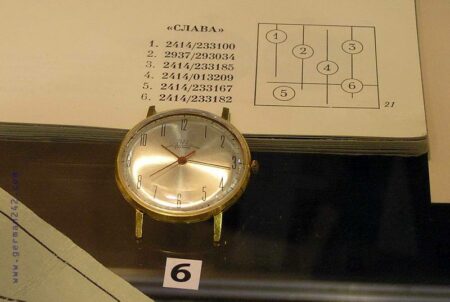 Svet, Fabrique d’Horloges Életriques de Léningrad, 1971Vostok Précision,s, Fabrique de Montres de Tchistopol, 1964Vimpel, 1ère Fabrique de Montres de Moscou, 1963Le Tchaïka 1200, le plus petit mouvement produit en URSS, l’un des plus petits au monde (années ’60)Poljot, 1ère Fabrique de Montres de Moscou, 1965Saturne, Fabrique de Montres de Tchistopol, 1961Polious (pôle), 1ère Fabrique de Montres de Moscou, 1962Cosmos, 1ère Fabrique de Montres de Moscou, 1964Stolichnie, 1ère Fabrique de Montres de Moscou, 1961Poljot de luxe automatiques de la 1ère Fabrique de Montres de MoscouPobeda au cadran serti de rubis d’horlogerieSlava transistor de la 2e Fabrique de Montres de MoscouSlava transistorLuch 2209 de la Fabrique de Montres de MinskAmphibia de la Fabrique de montres de Tchistopolchronographe Sekonda de la 1ère Fabrique de Montres de Moscouchronographe Poljot de la 1ère Fabrique de Montres de MoscouDivers modèles déclinés pour l’exportation (Corsar, Cornavin, etc.)n°2 Molnija de la Fabrique de Montres de Tchéliabinsk (années ’80) n°3 Pobeda de poche de la Fabrique de Montres Maslenikov (années ’80)n°4 chronographes Molnija de la Fabrique de Montres de Tcheliabinsk n°5 montres de poche Raketa de la Fabrique de Montres de Petrodvorets (années ’80)n°6 montres de poche Kristal de la Fabrique de Montres de Tcheliabinsk n°7 Poljot Amphibia de la 1ère Fabrique de Montres de Moscou (1973 et 1978)n°9 Slava 1001, 2e Fabrique de Montres de Moscou, 1971 n°10 Zaria 2009 Vesna, Fabrique de Montres d’Ouglitch, 1970